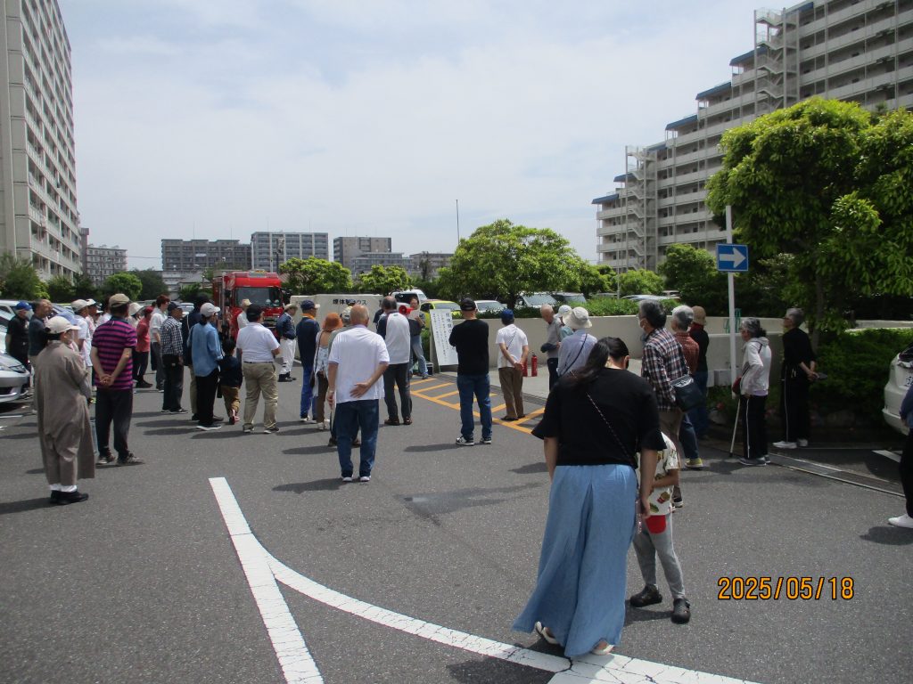5月18日(日)、午前9時30分から、東建検見川マンションの自主防災組織「きずなの会/谷口 幸一会長」主催の防火・防災訓練が行われ、管理組合の役員や住民およそ80人が参加し、訓練を通して災害時の備えや心構えなどを学びました。
