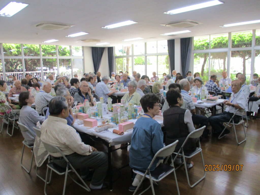 東建検見川マンション管理組合と東建検見川マンション自治会の共催で、令和7年度の敬老会が、ことしも9月7日(日)に開催されました。この敬老会には、東建検見川マンションに居住する75歳以上の住民およそ100人が参加しました。