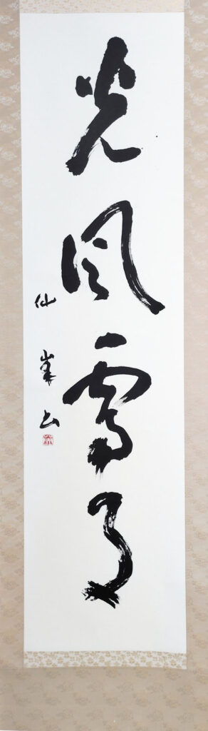 仙峯 作品 2025年12月19日 最終更新日時 : 2026年1月28日 kouhou 光風霽月 (こうふうせいげつ) 漢字作品 【めでたさも 中くらいなり おらが春】 小林 一茶 春の句 かな作品1 【紫の 袖に振りけり 春の雪】 小林 一茶 春の句 かな作品2 コメント 第20回『玄穹社書展』が令和6年12月に京都みやこめっせにある美術工芸ギャラリーで開催 されました。同書展に漢字作品1点、かな作品2点を出展しました。