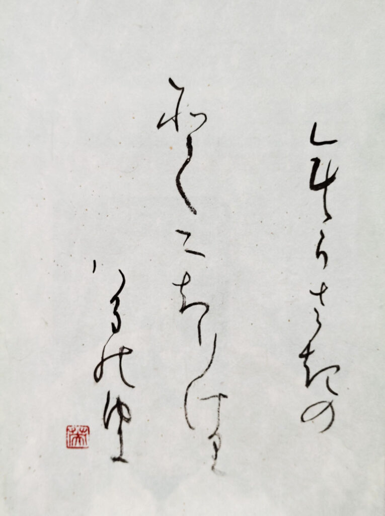 仙峯 作品 2025年12月19日 最終更新日時 : 2026年2月14日 kouhou 光風霽月 (こうふうせいげつ) 漢字作品 【めでたさも 中くらいなり おらが春】 小林 一茶 春の句 かな作品1 【紫の 袖に振りけり 春の雪】 小林 一茶 春の句 かな作品2 コメント 第20回『玄穹社書展』が令和7年12月に京都みやこめっせにある美術工芸ギャラリーで開催 されました。同書展に漢字作品1点、かな作品2点を出展しました。