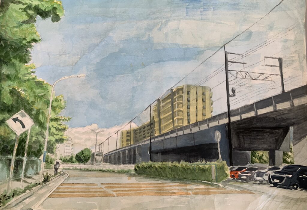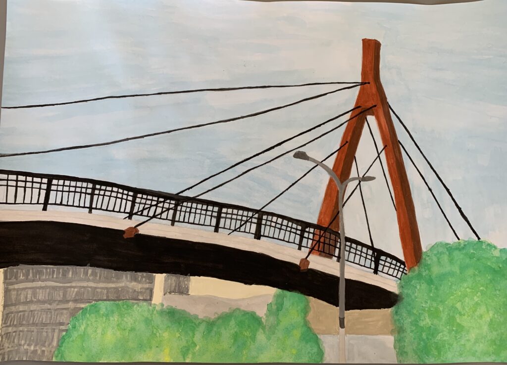 検見川高校2年 栗山 光柚花 「左の橋と右の木の明暗を分けてかきました」