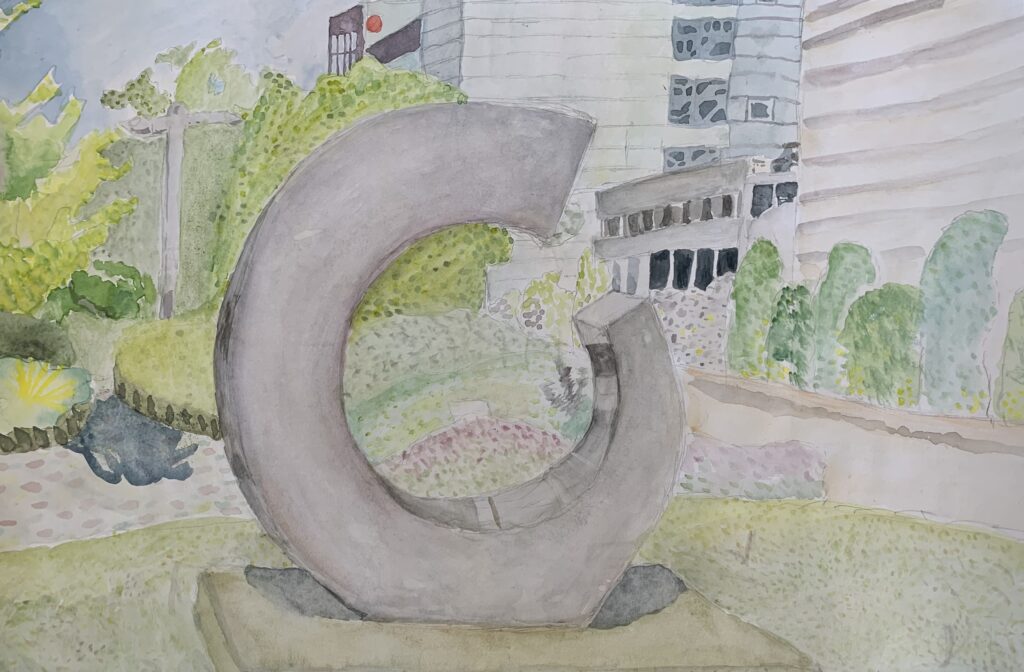 真砂中2年 ***** 「登校中にかならず目にする校門を描きました」
