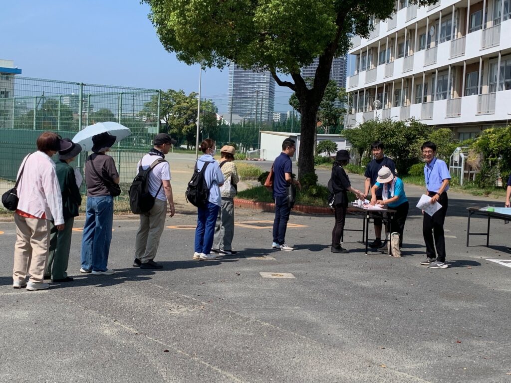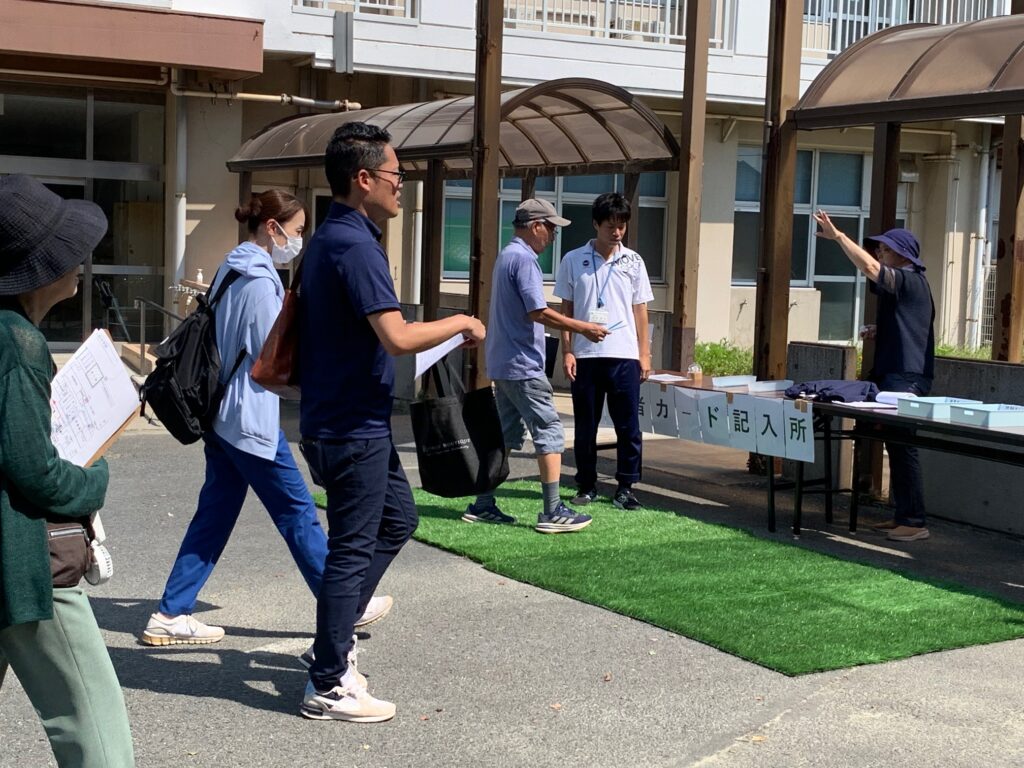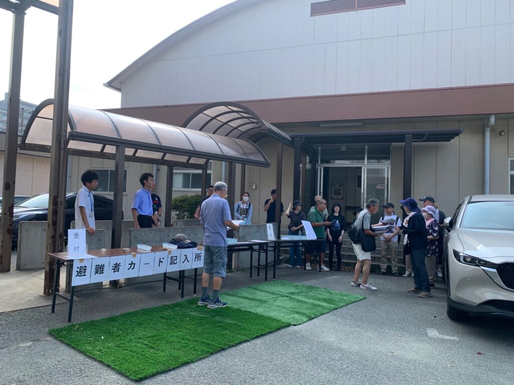 8月24日(日)8:00~10:30まで真砂中学校に於いて避難所開設訓練が行われ、市の担当者や、真砂中教職員、近隣自治会関係者が参加しました