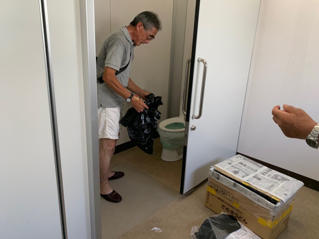 断水時の非常用トイレの設営を見学しました