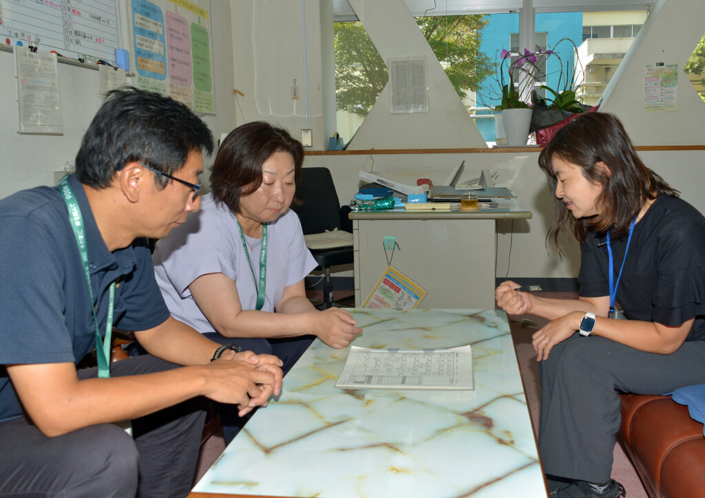 先生たちと打ち合わせを行う、桑原校長
