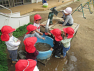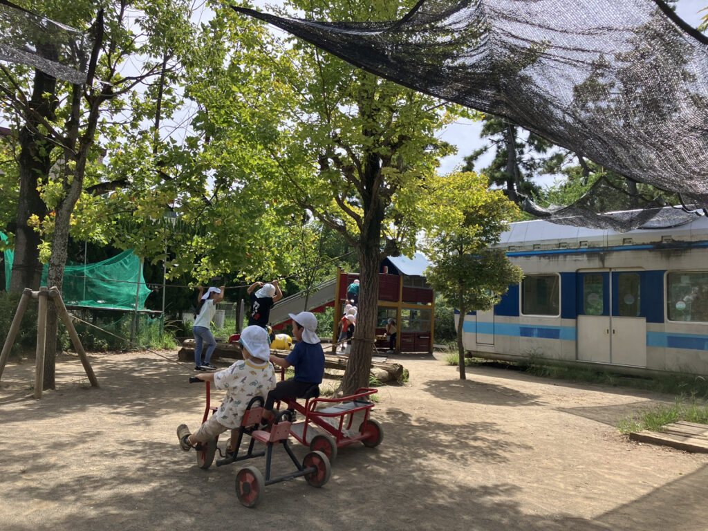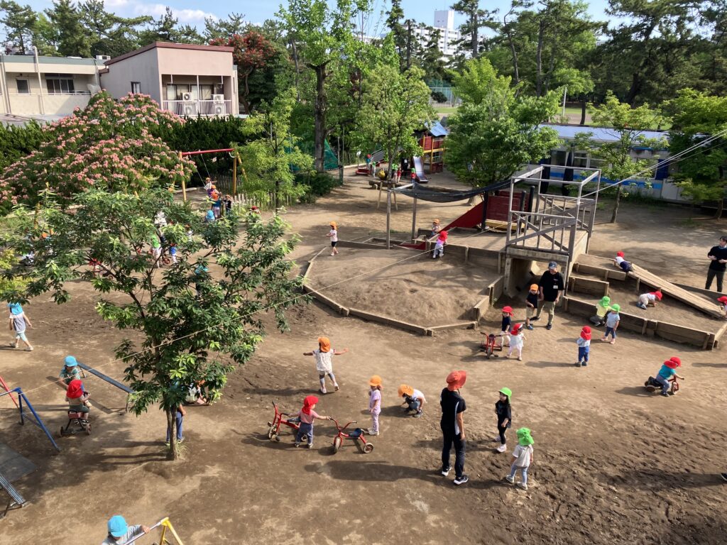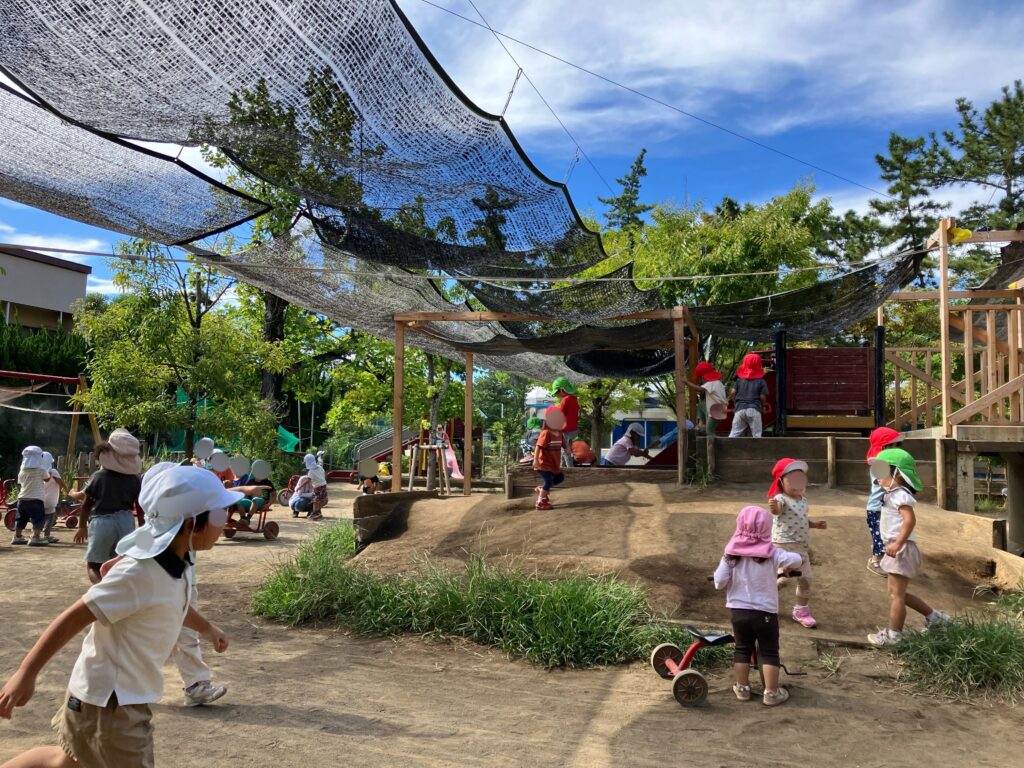 園庭での遊びを中心に保育している所です。