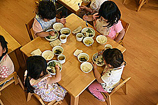 食事をする園児たち