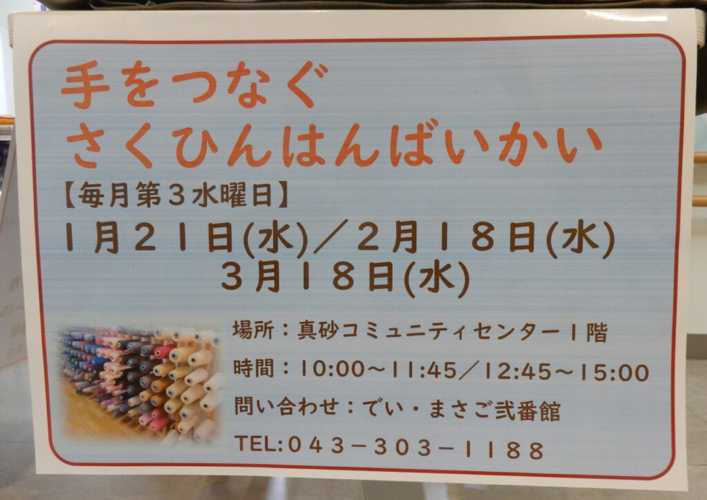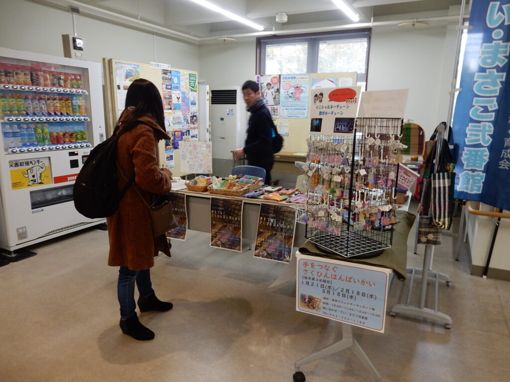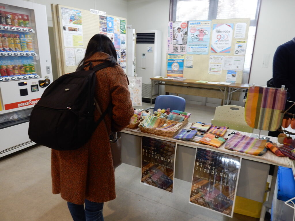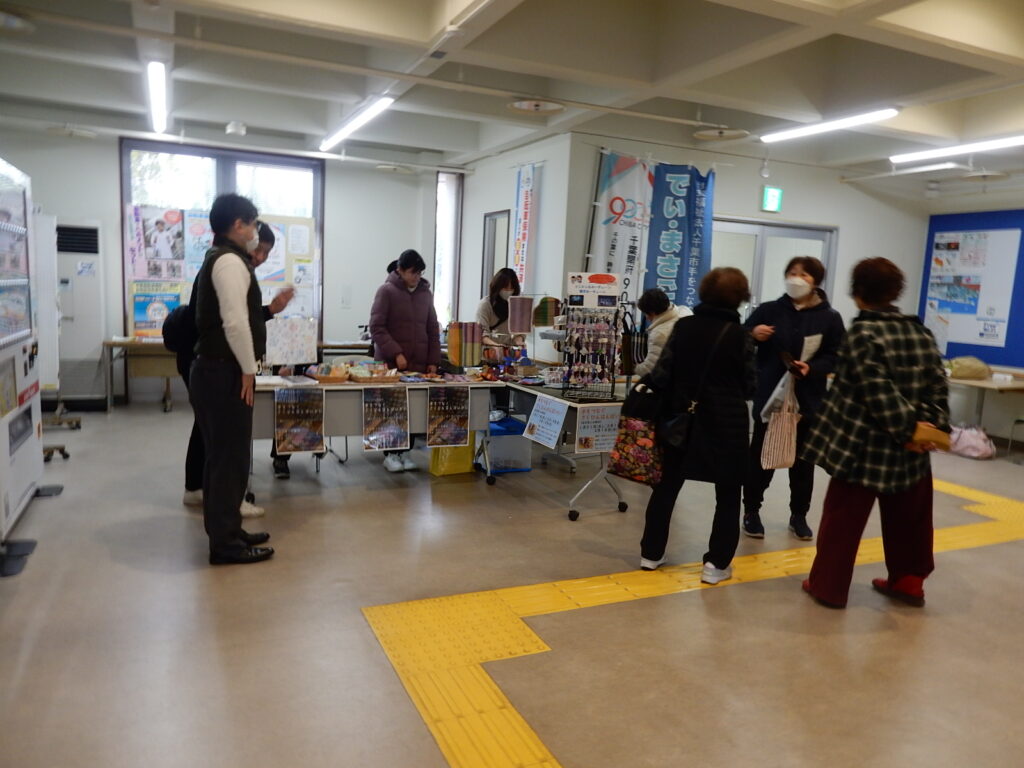 この「手をつなぐ作品はんばいかい」は、でい・まさご弐番館(所長 染谷 英樹氏)が主催し、真砂コミニュティセンターが共催で、1月21日(水)真砂コミニュティセンターの1階ホールで開催されたものです。