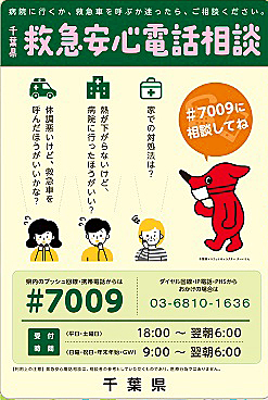 皆さん、ご存じですか! 夜間や休日に急病で困ったときはまずは救急安心電話相談#7009番へ電話をかけましょう!!平日土曜日は18:00~翌日6:00 / 日曜・ 祝日・年末年始は9:00~翌日6:00で医師や看護師が相談に応じてくれます。また、こども急病電話相談は☎#8000番、一年を通して19:00~翌日6:00です。具合が悪くなり、「医療機関を受診するか」「救急車を呼ぶか」迷われたときも、是非、ご相談ください