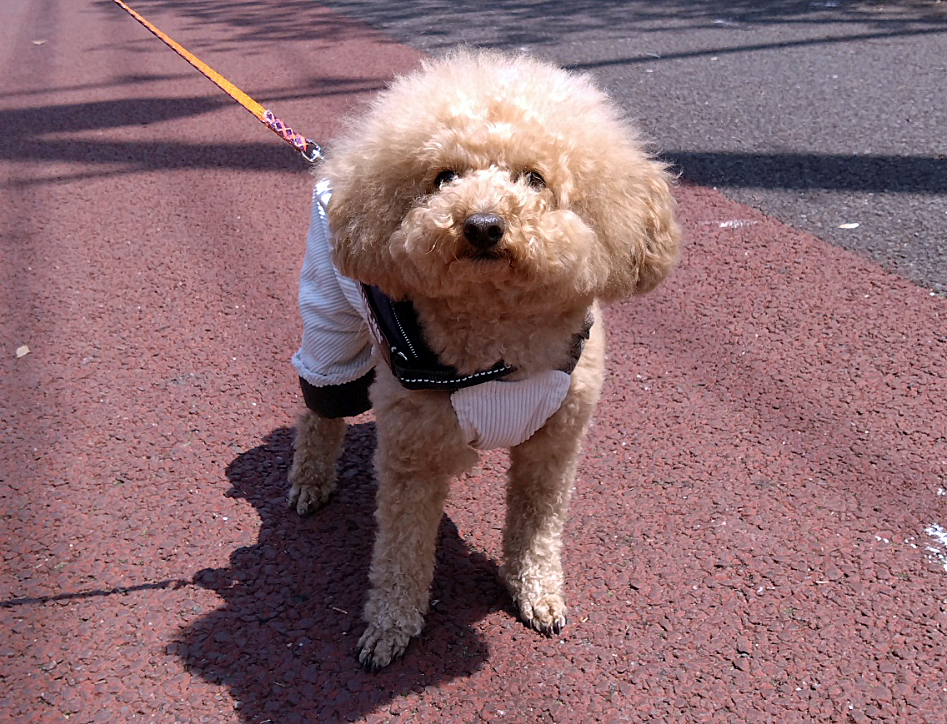 飼い主さんと真砂中央公園内やくすのき通りを、よく散歩しています。