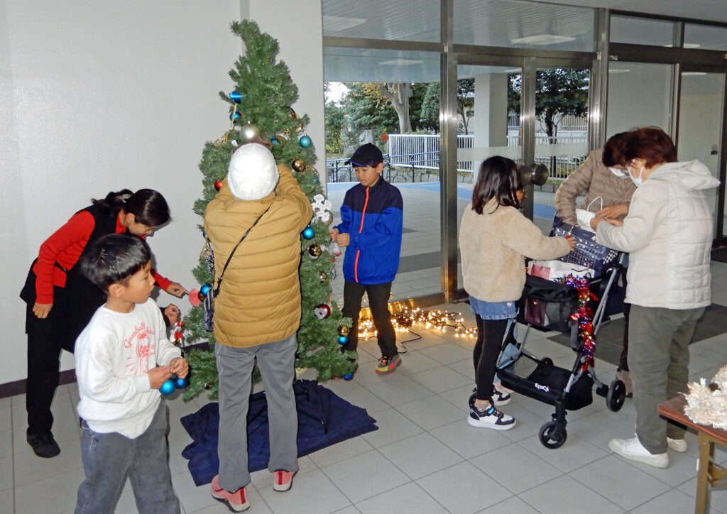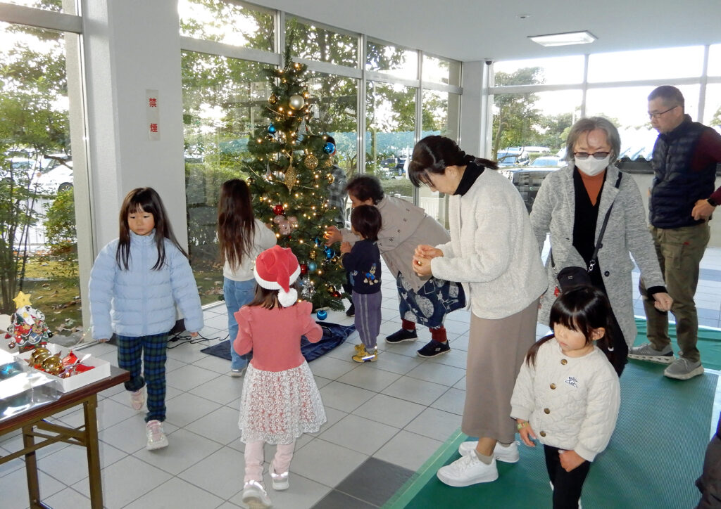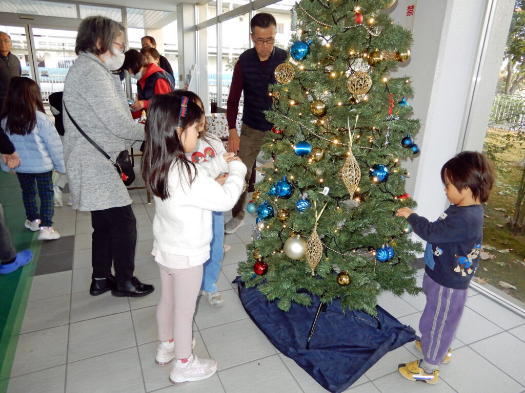 作業をおえた子供たちはサンタクロースやお星さまの飾り物がキラキラと輝く豆電球により浮かび上がるのを見て手を叩いて喜んでいました。