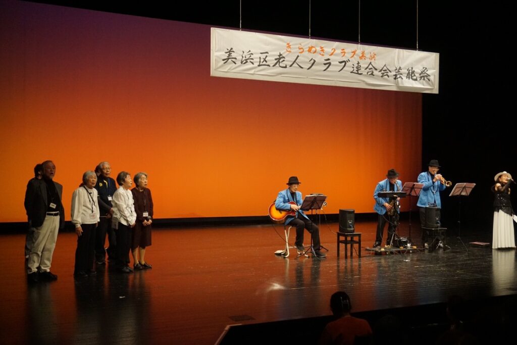 「美浜区老連主催の芸能祭」が3月7日土曜日に美浜文化ホールで華やかに開催されました。8回目の開催。会場を埋めたほぼ満員の観衆を前に、歌や踊り、太極拳、体操、楽器演奏など23の演目が次々と披露され、大きな声援と拍手をもらいました。最後に抽選会も行われ、会場は大いに盛り上がりました。