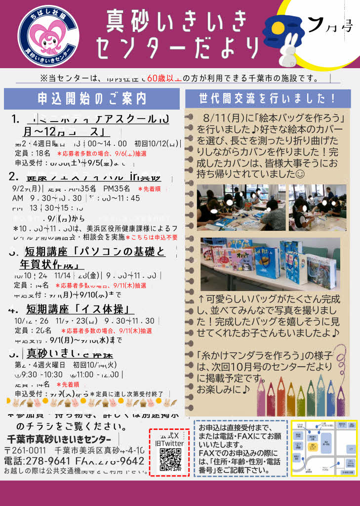 千葉市真砂いきいきセンター「真砂いきいきセンターだより9月号」を掲載します。
