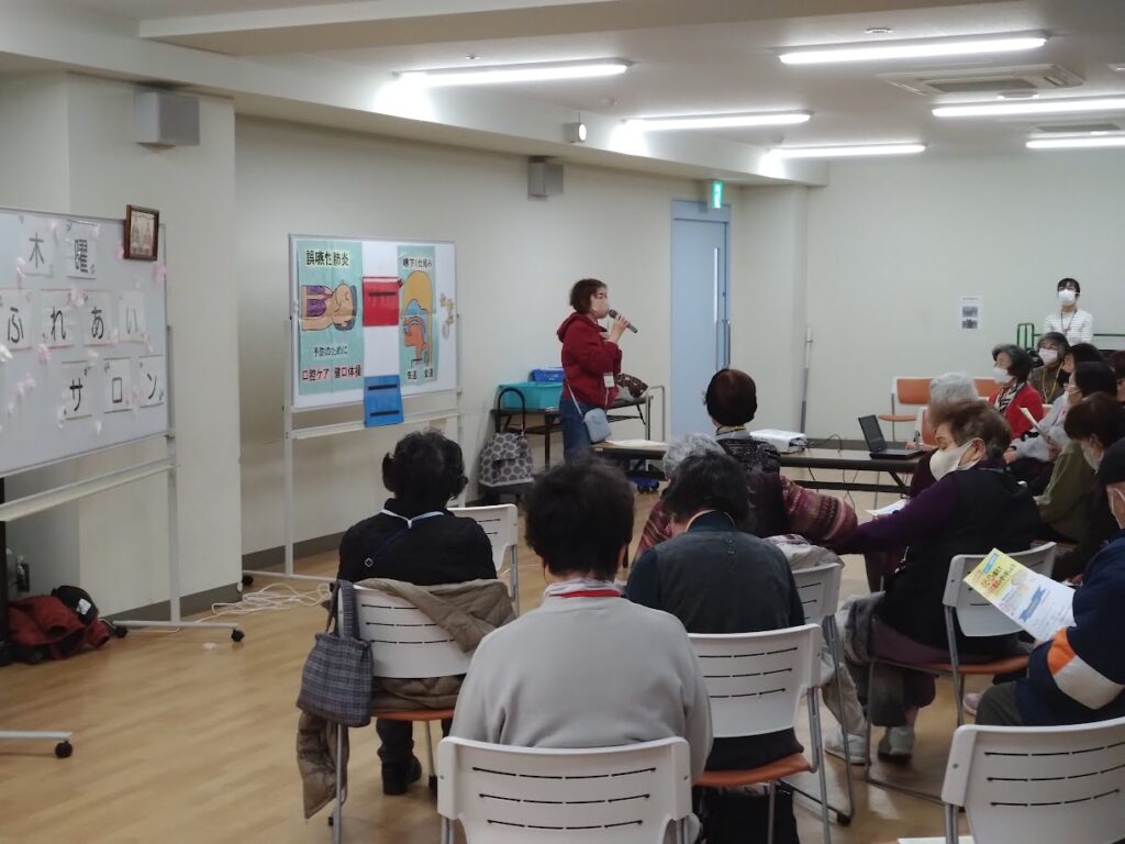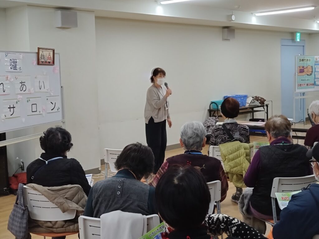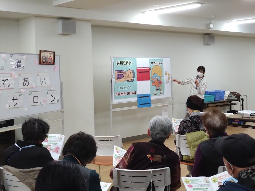 美浜保健福祉センター 健康課さんからパンフレットにより誤嚥性肺炎についての説明と予防についてのお話を伺いました。