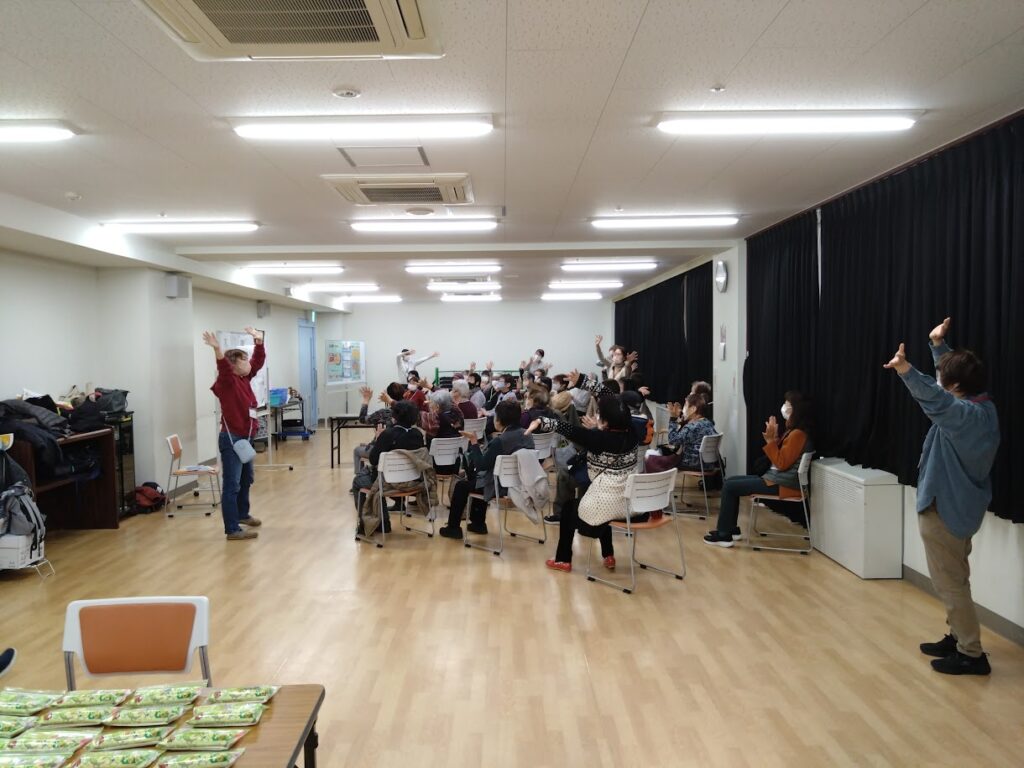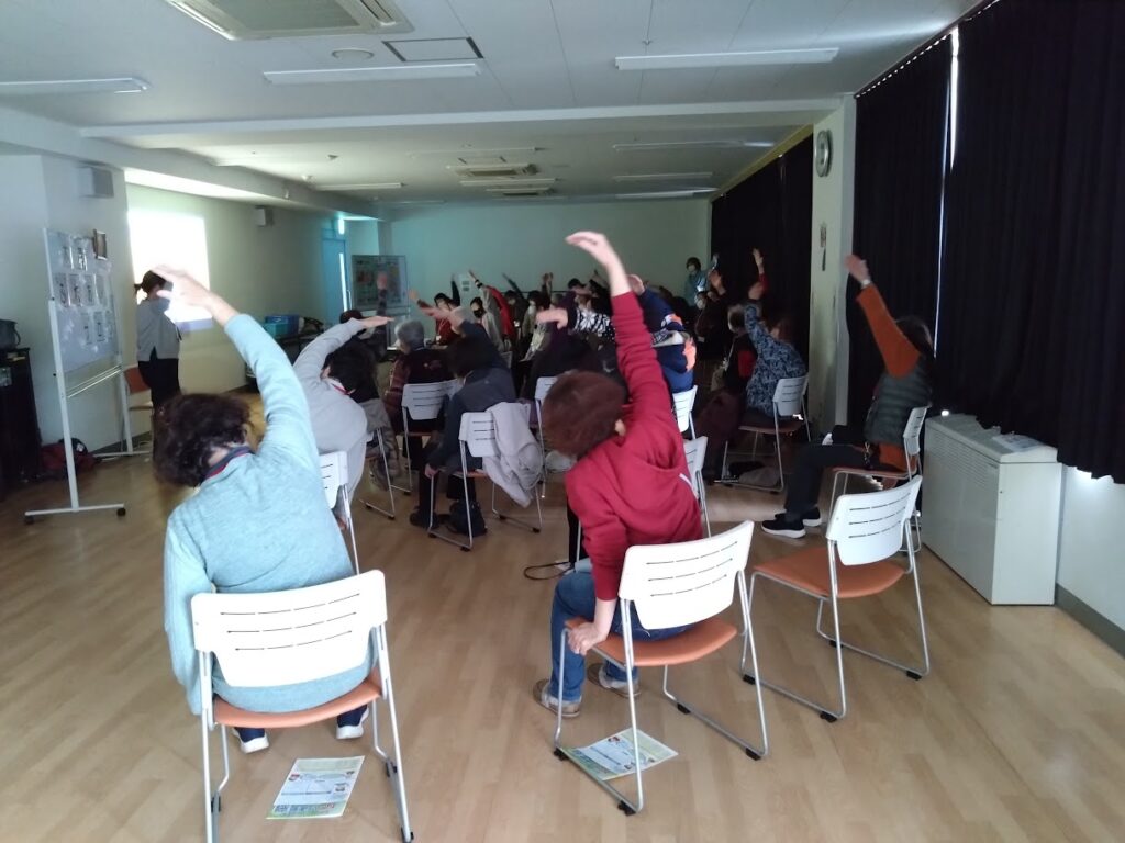 次に動画を観ながら誤嚥性肺炎防止のための体操を実際に15分程度しました。